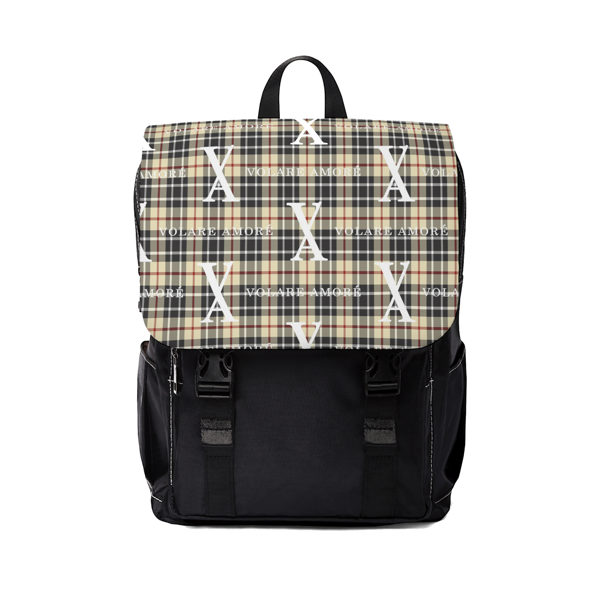 Flap with strap claps at the front